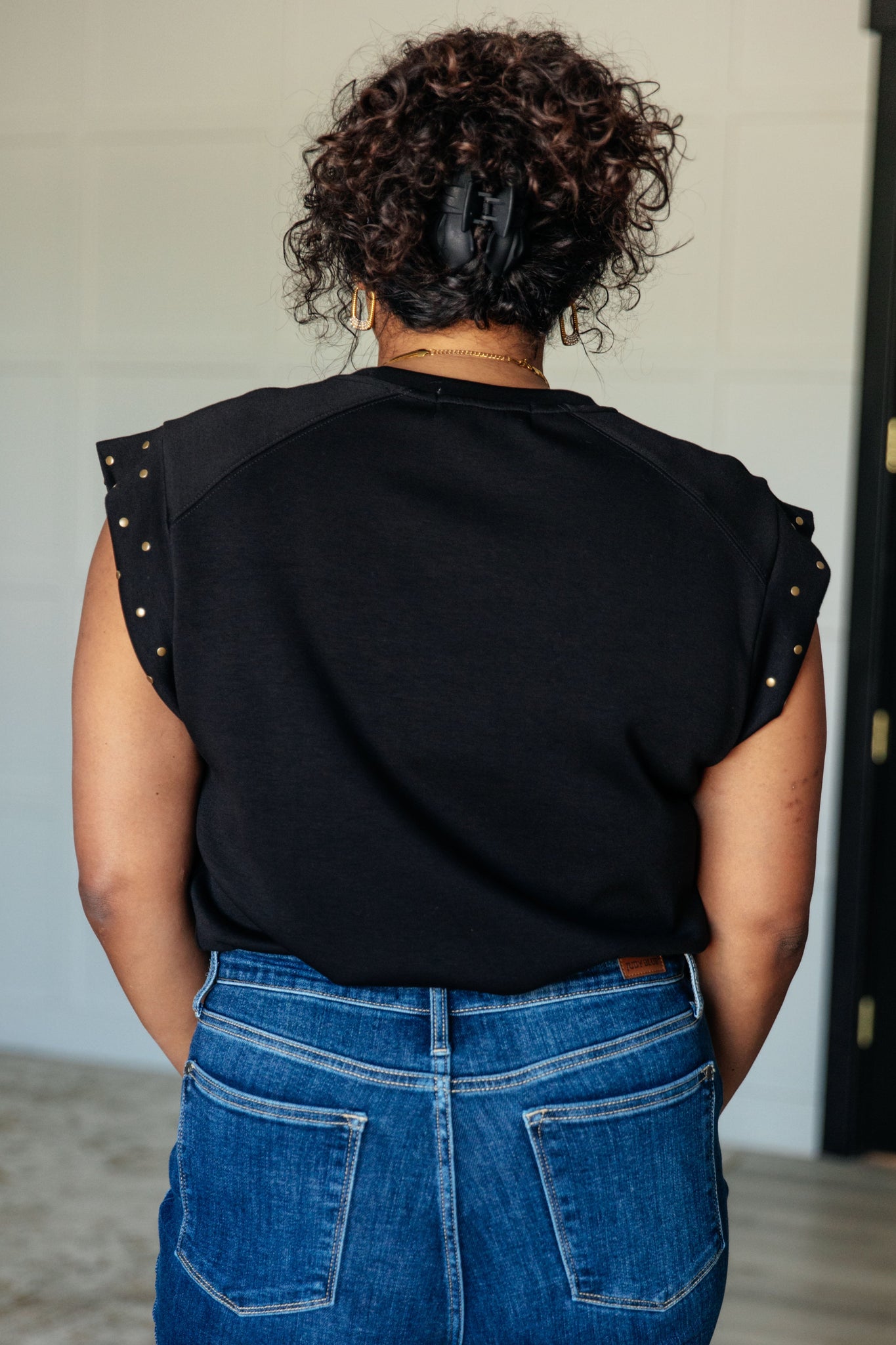 Unleash your inner rebel with our My Domain Studded Cap Sleeve Top. The knit fabric offers all-day comfort with a touch of stretch, while the round neckline and cap sleeves provide a chic and flattering silhouette. The banded sleeve cuff adds a stylish touch, and the stud embellishments give off a daring vibe. Claim your fashion domain with this edgy top!