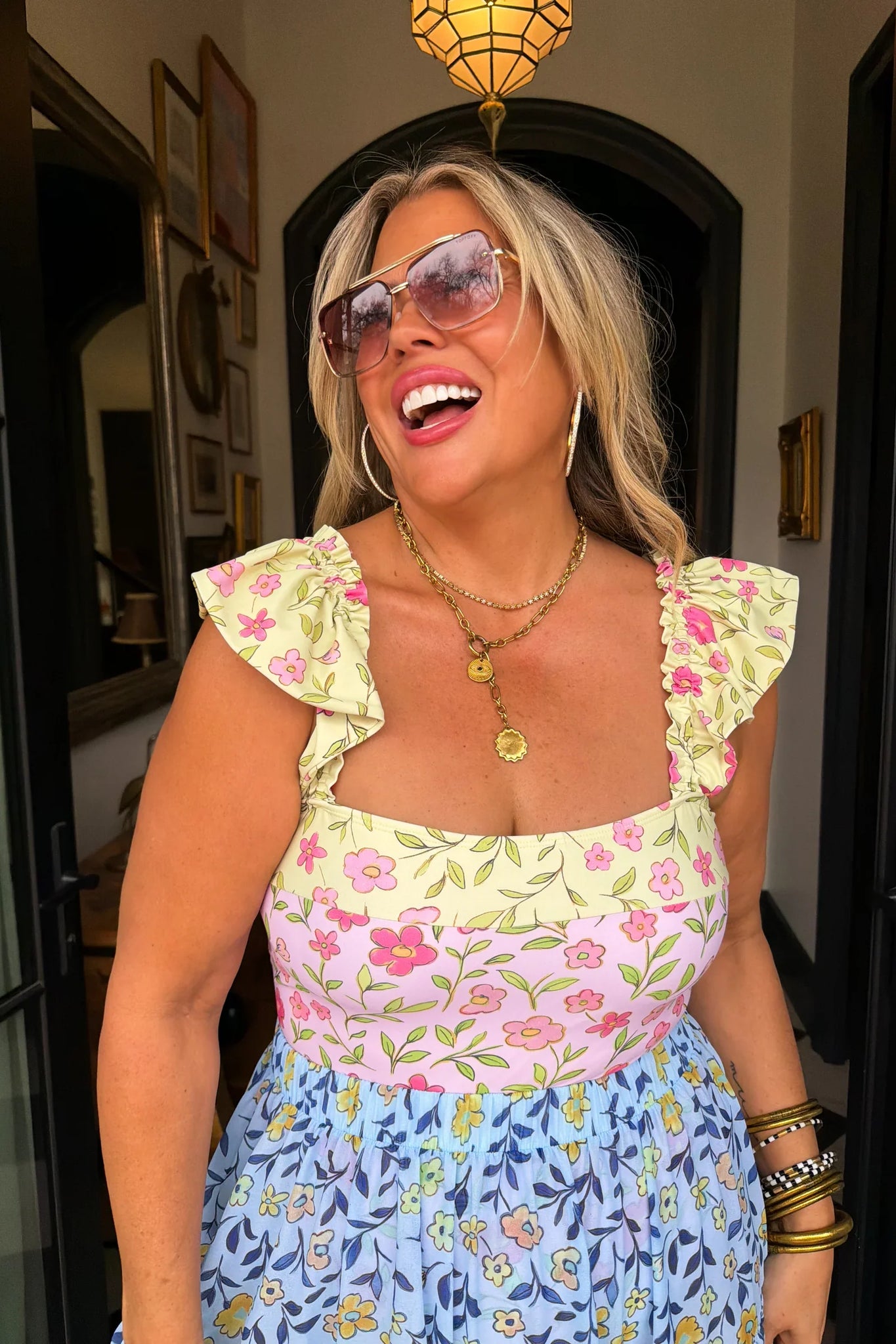 TOP: Perfect stomach coverage and comfort, this completely smocked top features a padded lined bra, removable straps, and the cutest ruffle trim!